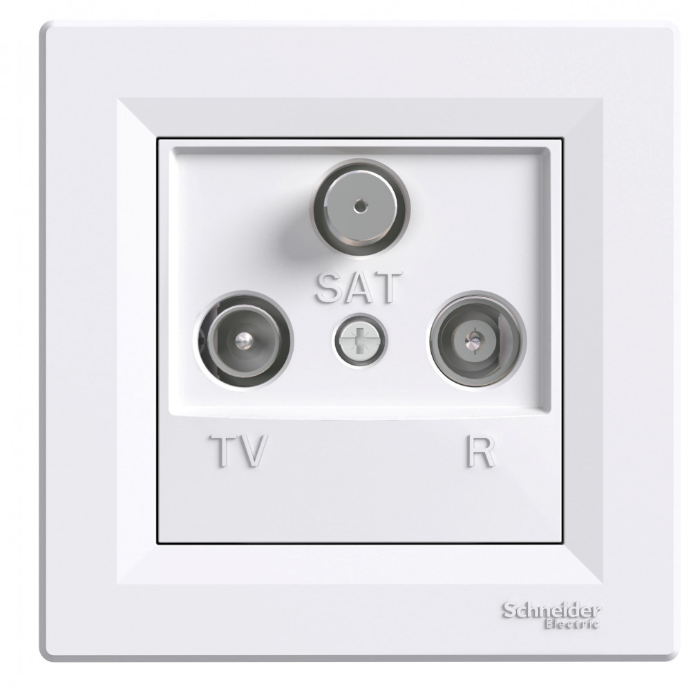 A Schneider Electric Asfora EPH3500121 TV/SAT/R aljzat, fehér színű, komplett termék. Az áramátvitel ebben a TV/SAT/R aljzatban, a SAT csatlakozón keresztül biztosított. A SAT csatlakozó F-típusú. Az FM-csatlakozó IEC 9,52 mm-es anya típusú. A TV aljzat végzáró és IEC 9,52 mm típusú. A készülék rögzítőkörömmel ellátott. A TV/SAT/R aljzat 83 mm széles, 83 mm magas és 42 mm mély, kiálló mélysége 13 mm. Süllyesztett szerelés is lehetséges, vagy kiemelődobozba is felszerelhető. A felületkialakítása fényes és egy elegáns felső kategóriás termék érzetét kelti. A TV/SAT/R aljzat csavaros bekötésű. IP20-as védettséggel rendelkezik. A TV/SAT/R aljzat ABS-ből (akrilnitril-butadién-sztirol) áll, ami a lehető legnagyobb ellenállást biztosítja. A rézből készült vezető anyaggal ez az aljzat meglehetősen strapabíró. Emellett rendelkezik a CE minősítéssel is. Higanymentes. Ezenkívül ezt a terméket kifejezetten lakossági, kis kereskedelmi célokra tervezték, megkönnyítve a napi igények egyszerű és biztonságos kielégítését. Az Asfora család sorozata, villanykapcsolókat, dimmereket, hálózati és kommunikációs aljzatokat, valamint redőnyvezérlőket is tartalmaz. A kecses, elegáns dizájn tökéletesen illeszkedik minden helyiségbe Az Asfora termékek olyan jó minőségű anyagokból készülnek, amelyek idővel sem sárgulnak meg.