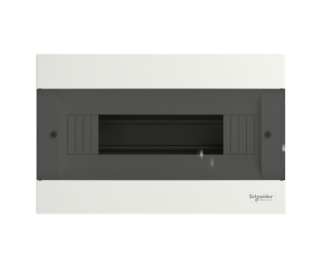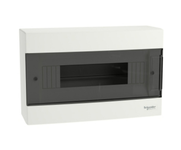 SCHNEIDER EZ9EUC112 EASY9 EU Kiselosztó, 12 modul, PE+N sínnel, füstszínű ajtóval, falon kívüli