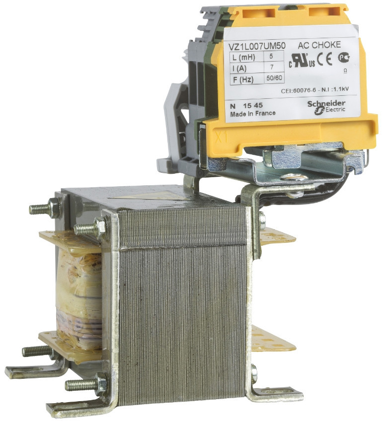 SCHNEIDER VZ1L007UM50 Altistart lágyindító kiegészítő, hálózati fojtó, 5 mH, 7A, 1 fázis, ATV320 (1f 550-750W) és Lexium hajtásokhoz