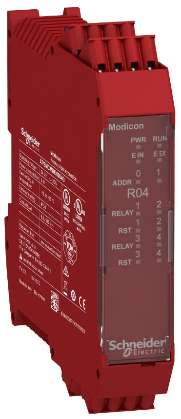 SCHNEIDER XPSMCMRO0004G Preventa XPS MCM biztonsági vezérlő, biztonsági bővítő I/O modul, 4DO (relé) + 4DI (start/restart)