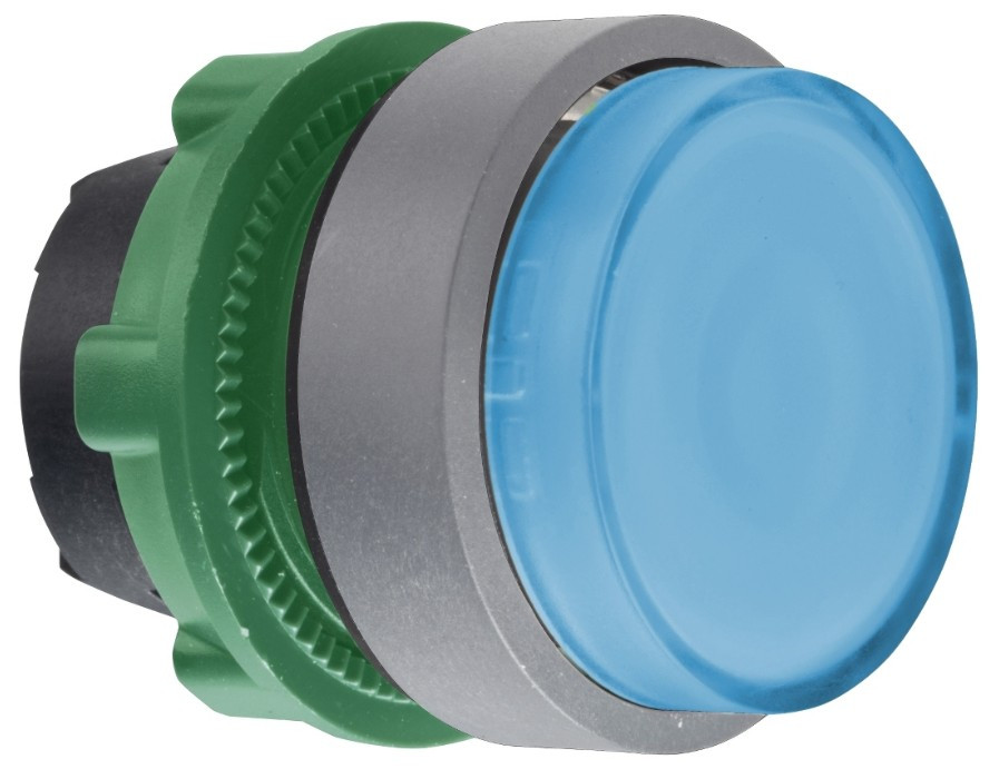 SCHNEIDER ZB5AH63C0 Harmony műanyag világító nyomógomb fej, Ø22, nyomó-nyomó, kiemelkedő, kék, szürke perem