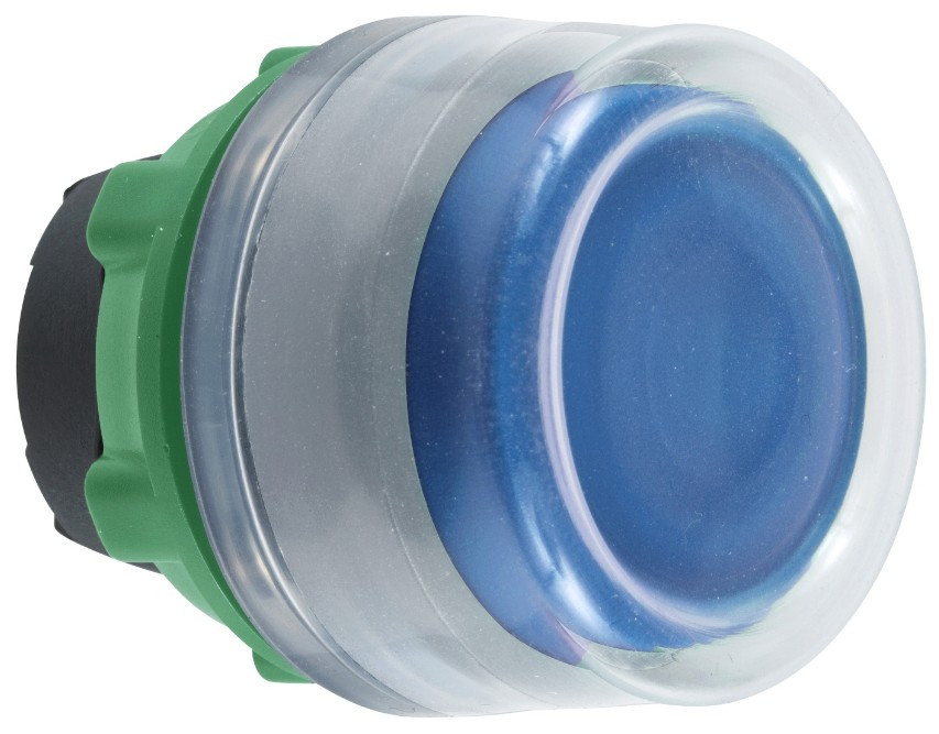 SCHNEIDER ZB5AW563C0 Harmony műanyag világító nyomógomb fej, Ø22, visszatérő, védősapkás, beépített LED-hez, kék, szürke perem