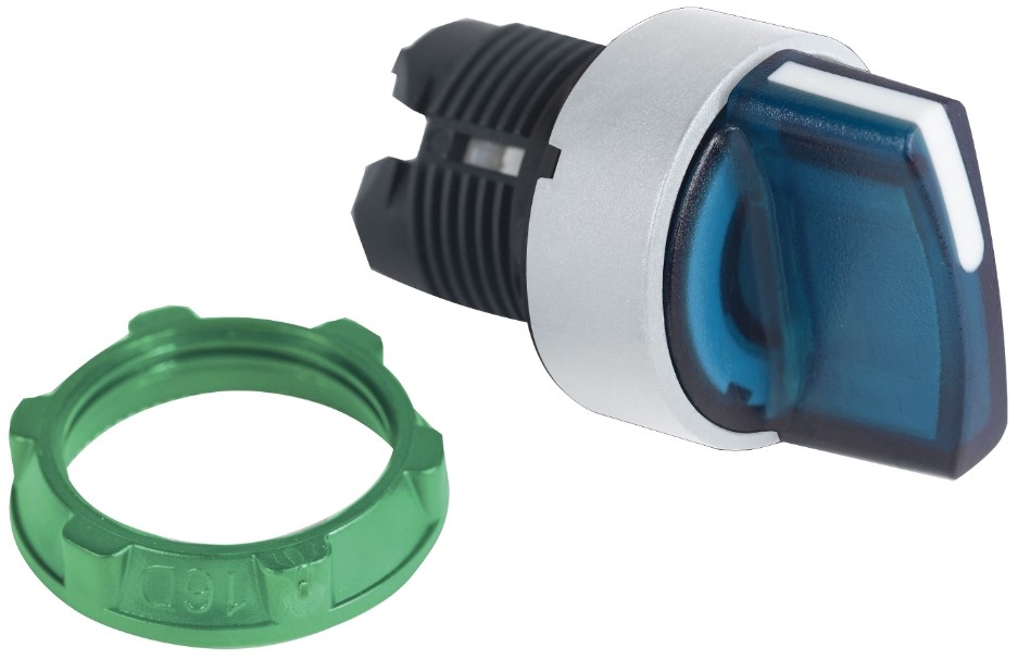 SCHNEIDER ZB5FK1563C1 Harmony panelbe süllyesztett műanyag világító választókapcsoló fej, Ø30, 3 állású, kék, középre vissza., fehér perem