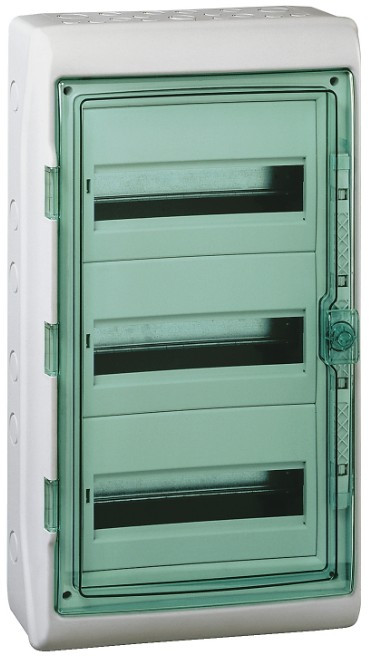 A Mureva Styl - weatherproof enclosure rackbe épített változatos kivitelű, 3-soros, 12 modulos szekrény megfordítható átlátszó fedéllel rendelkezik. A modulok száma összesen 36. A doboz méretei (szélesség) 340 mm × (magasság) 610 mm × (mélység) 160 mm. A névleges áramerősség 125 A, az EN 60439-1 szabvány szerint a teljes szigetelés 2. osztályú. A védettség IP65 és IK09. A szekrény színe világosszürke (RAL 7035). Az üzemi hőmérséklet -25°C és 60°C között van. Üres, ez a szekrény megfelel az IEC 60670 szabványnak. Felszerelt kapcsolószekrények, ez a szekrény megfelel az IEC 60493-3 szabványnak. Ez a szekrény beltéri és kültéri vízálló telepítésre készült.
