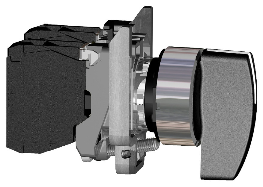 Harmony ATEX D komplett háromállású kapcsoló, Ø22, fém, 2NO, fekete, visszaugró, hosszabbított kar