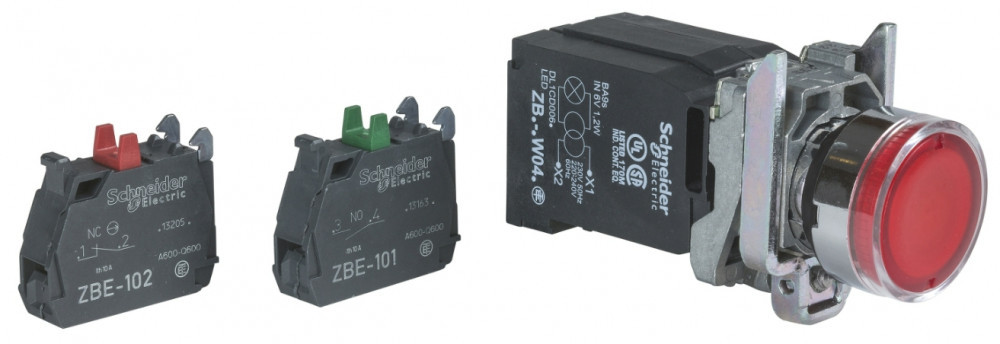 SCHNEIDER XB4BW3435 Világító nyomógomb +transzformátor, piros