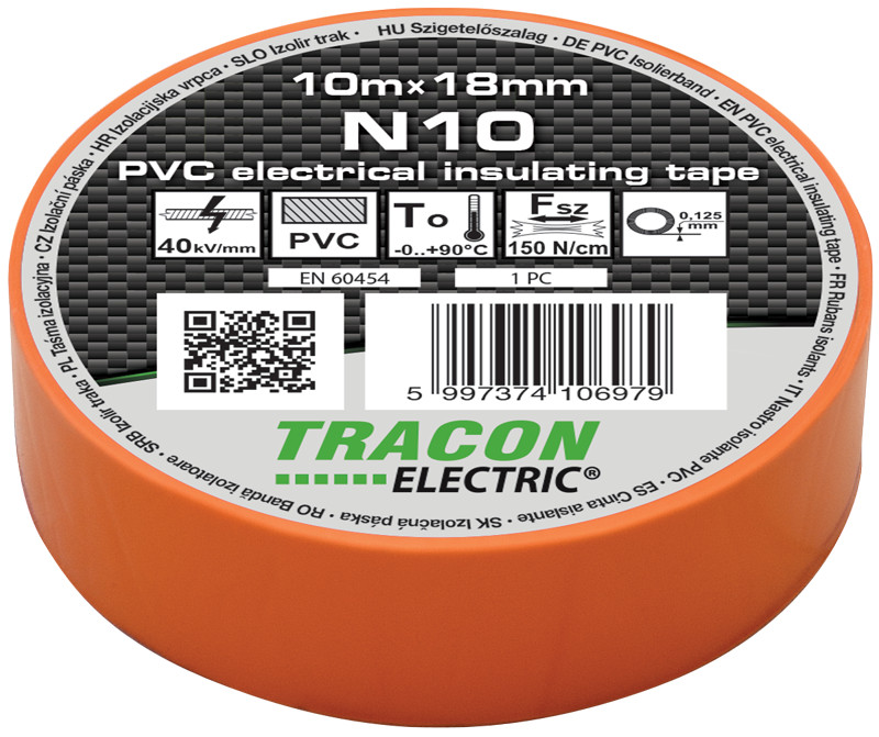 TRACON N10 Szigetelőszalag, narancs 10m×18mm, PVC, 0-90°C, 40kV/mm