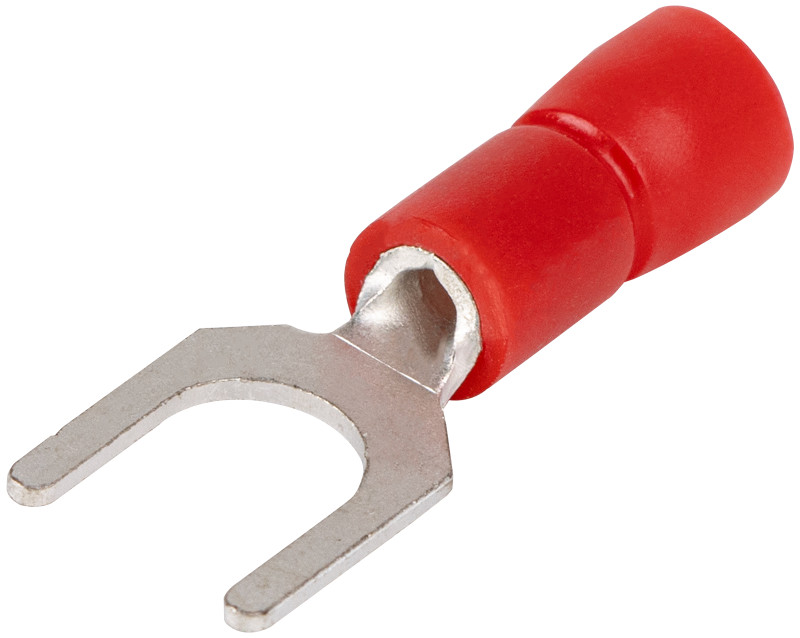 TRACON PV4 Szigetelt villás saru, ónozott elektrolitréz, piros 1,5mm2, M4, (d1=1,7mm, d2=4,3mm), PVC