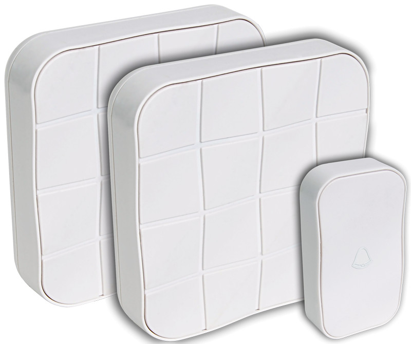TRACON BELLW1-1V2 Vezeték nélküli csengő, négyzetes, 1 adó, 2 vevő 3×AA, 1×CR2032, IP44, 100m, 10 music