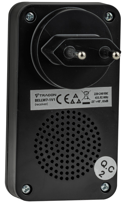 TRACON BELLW7-1V1 Vezeték nélküli csengő (kinetikus) 230 VAC; IP44; 100 m; 16 music; 82 dB