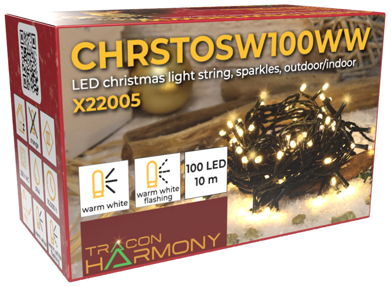 TRACON CHRSTHOSW200WW Karácsonyi sziporkázó fényfüzér, kültéri/beltéri (X25031) 230VAC, 2+5M, 200LED, 3,6W, 2600-2700K, IP44 általános leírása: