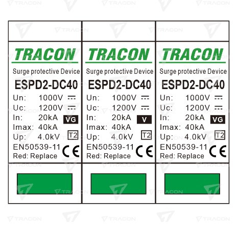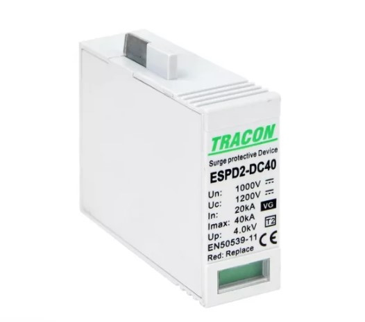 TRACON ESPD2-DC40-1000VGO T2 DC típusú VG túlfeszültséglevezető, betét 1000V Ucpv: 1200V, In:20kA, Imax:40kA, Up:4kV, Var+GTD