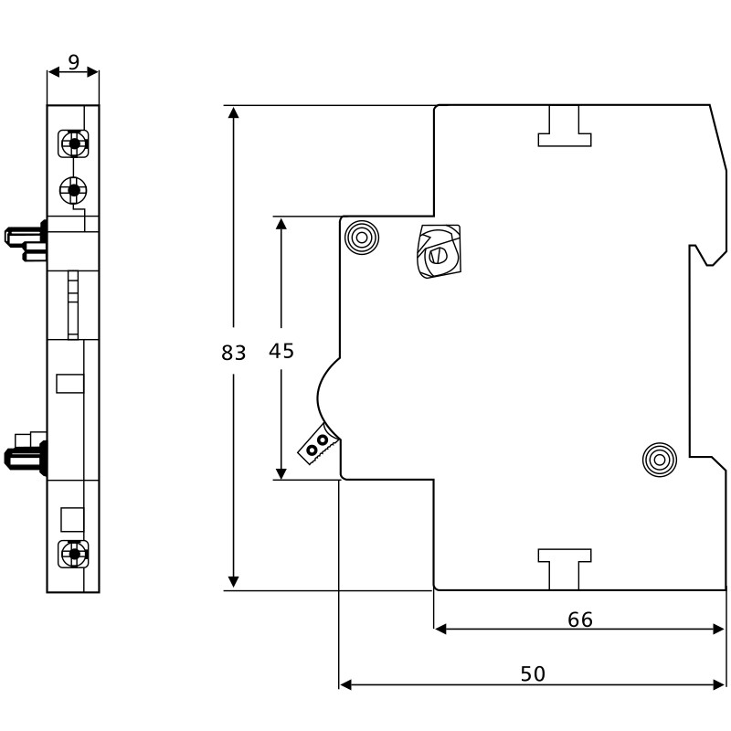 TRACON EVOH-AUX11 Segédérintkező EVOH kismegszakítóhoz 230V, 50Hz, In:6A W=9mm; 0,5-4mm2
