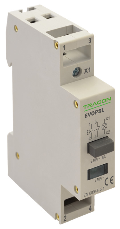 TRACON EVOPSL Moduláris nyomókapcsoló, jelzőfénnyel 230V, 50Hz, 1NO+1NC, LED, Ith:16A, AC-14, Ie:6A