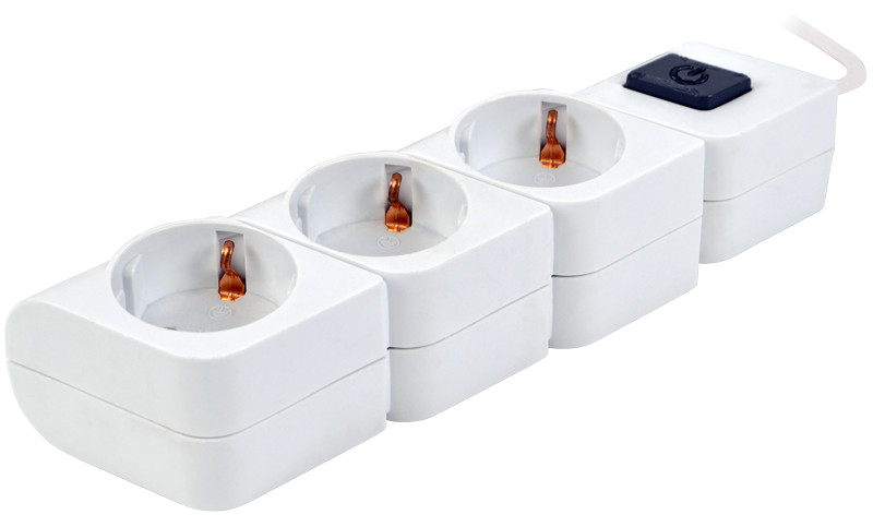 TRACON HKD-3 Hordozható elosztósáv kapcsolóval, fehér 3×SCHUKO, 1,4m, max.16A, 250VAC, 3680W, 3x1mm2, H05VV-F általános leírása: