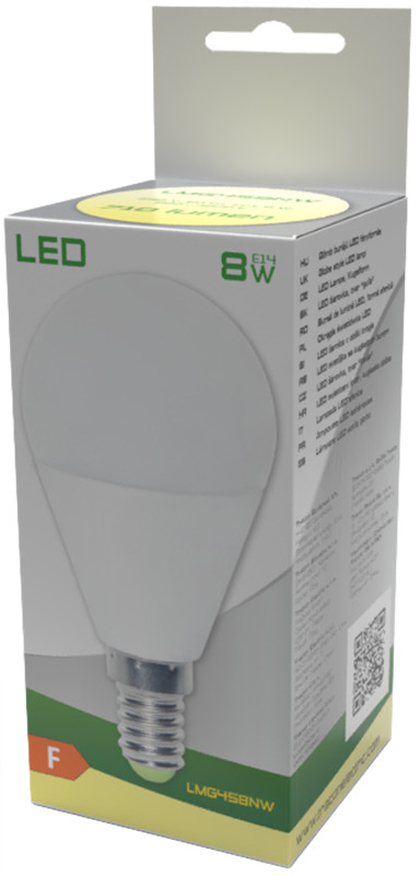 TRACON LMG458NW Gömb burájú LED fényforrás 230 V, 50 Hz, E14, 8 W, 710 lm,200°, 4000 K, EEI=F