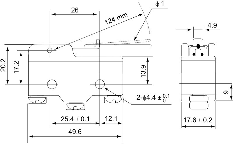 TRACON LS15HW24-B Helyzetkapcsoló, rugószáras 1xCO, 2A/230V AC-15, 0,3A/250V DC-13, 110mm, IP00