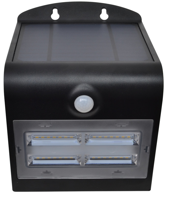 TRACON LSLBB3W Napelemes LED fali világítótest mozgásérzékelővel, fekete 3,2 W, 4000 K, 400 lm, IP65, 3,7 V, 2 Ah