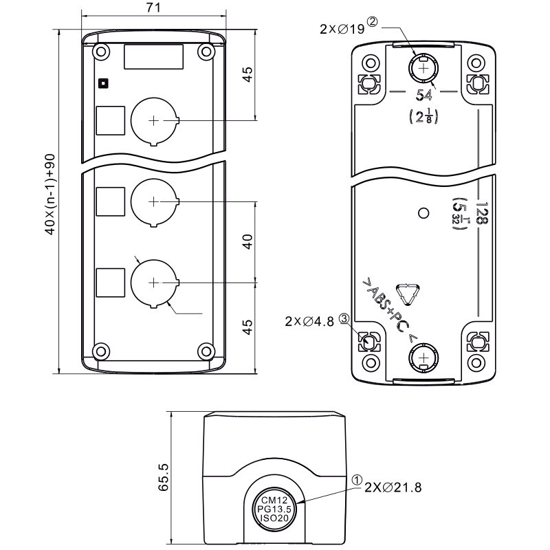 TRACON NYGD-6GR Összeállított tokozat nyomógombokhoz, szürke, 6-es d=22,5, IP65, 2×PG-13,5