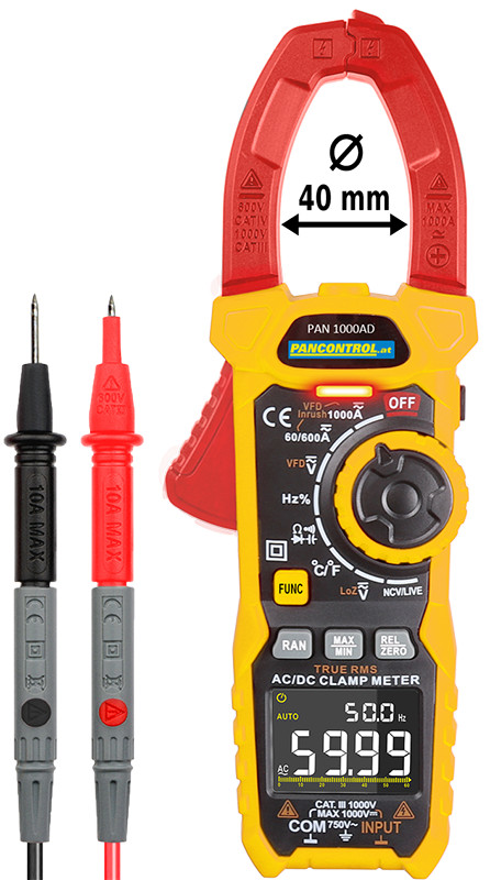 TRACON PAN1000AD Digitális lakatfogó AC/DC TrueRMS ACV/DCV 600V , ACA/DCA 1000A, R, Hz, C, d=35mm