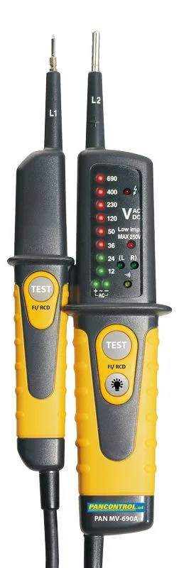 TRACON PANMV-690A 2 pólusú feszültségvizsgáló LED kijelző és AVK teszter, 12-690V AC/DC