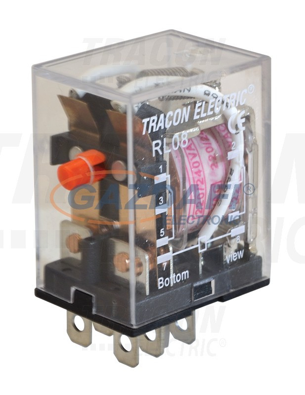 TRACON RL08-12DC Miniatűr teljesítmény relé 12V DC / 2×CO (10A, 230V AC / 28V DC)
