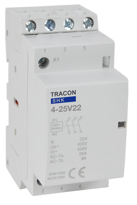 TRACON SHK4-25V22 Installációs kontaktor 230V AC, 50Hz, 2 Mod, 2×NO+2×NC, AC1/AC7a, 25A