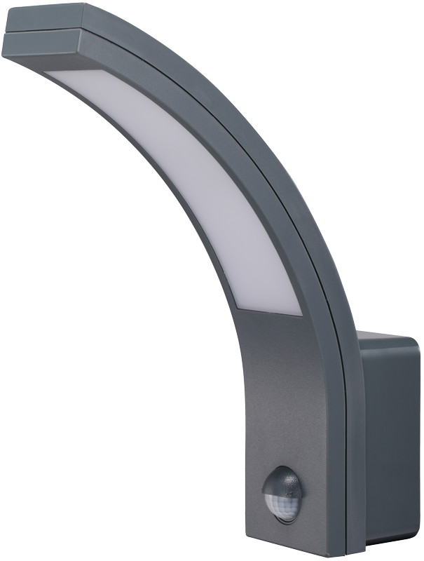 TRACON SLIA15W Mozgásérzékelős fali lámpatest, ívelt forma, antracit 230VAC, 15W, 140°, 2-9m, 10s-5m, 4500K , IP54, 1100lm, EEI=G