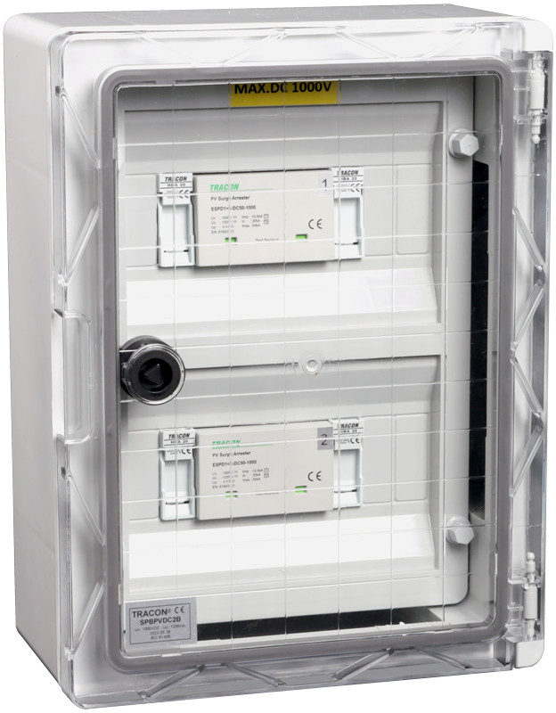 TRACON SPBPVDC2B Túlfeszültség-védelmi doboz fotovoltaikus rendszerekhez 330x250x130mm, IP65, DC1+2, Un=1000VDC