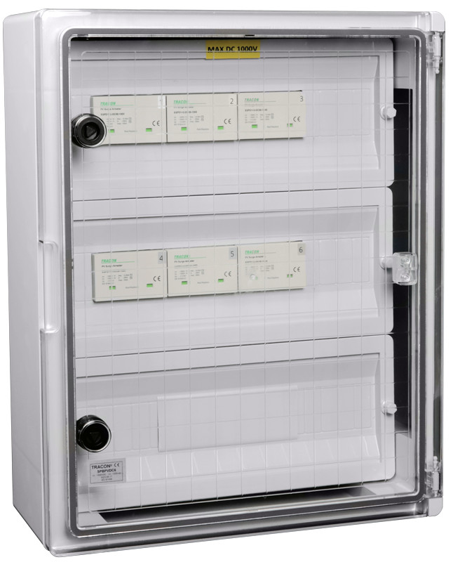 TRACON SPBPVDC6 Túlfeszültség-védelmi doboz fotovoltaikus rendszerekhez 500x400x175mm, IP65, DC1+2, Un=1000VDC