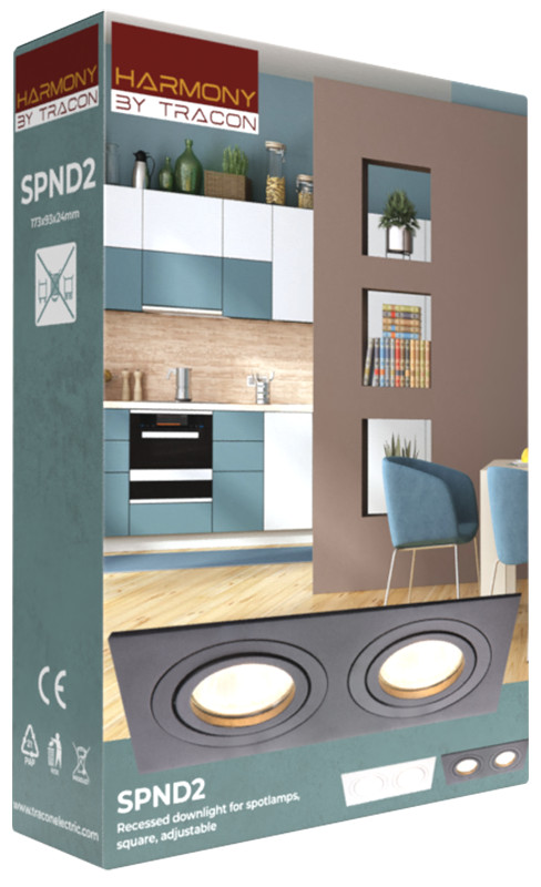 TRACON SPND2B Süllyesztett spot lámpatest, négyzetes, dönthető, fekete 173x93x24mm