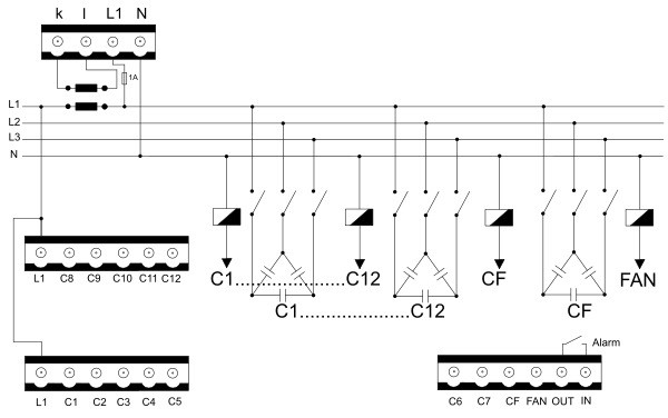 TRACON TFJA-01 Fázisjavító automatika, egyfázisú, 7 kondenzátor telephez 144×144mm