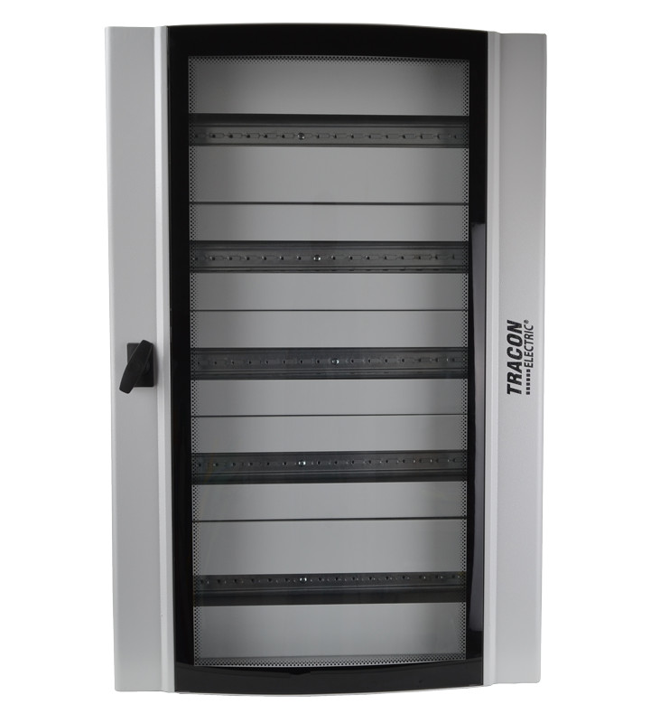 TRACON TGE609020 Ívelt biztonsági üvegajtós fémelosztószekrény 600×900×200mm / 120M (5×24 mod)