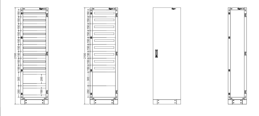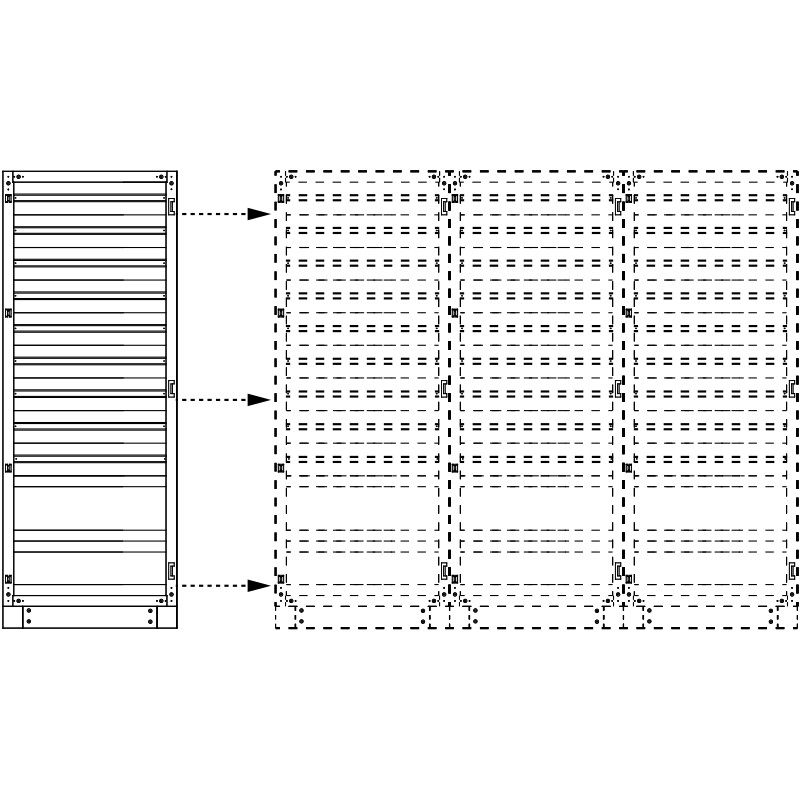 TRACON TGEFM6021040M Moduláris (sorolható)fém elosztószekrény DIN-Rail modulokkal W×L×H=600×2100×400 / 288M (12×24) , IP54