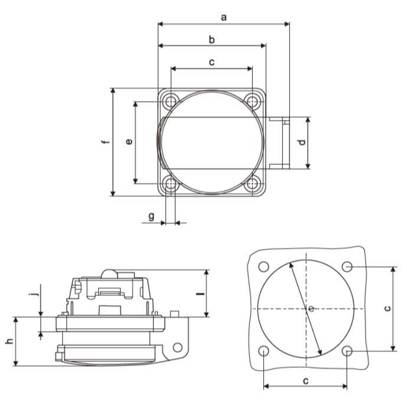 TRACON TICS-105S67 Beépíthető csatlakozóaljzat, oldalsó védőérintkezővel, kerek 16A, 250V, 2P+E, IP67 (SCHUKO)