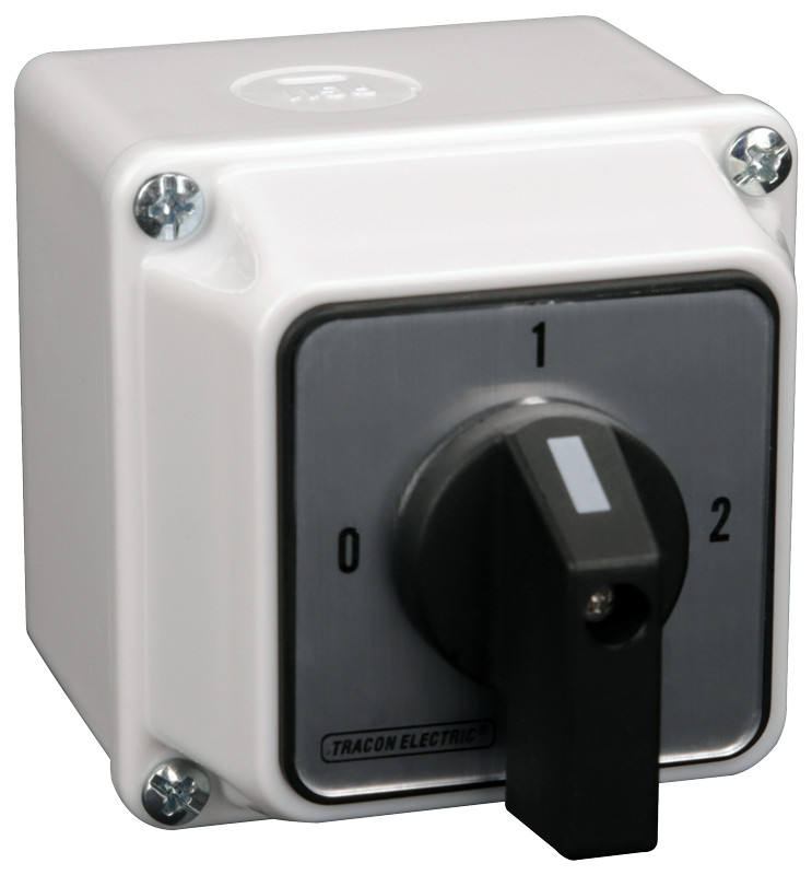 TRACON TKB-329/3T65 Tokozott választókapcsoló, 0-1-2 400V, 50Hz, 32A, 2×3P, 11kW, 64×64mm, 90°, IP65