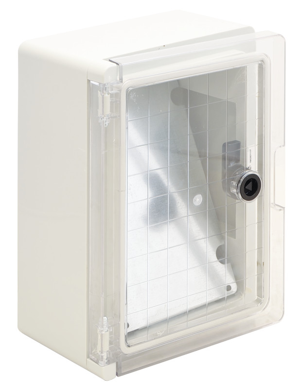 TRACON TME282113T Műanyag elosztószekrény átlátszó ajtóval HxWxD=280x210x130mm, IP65, IK10, 1000V AC/DC, RAL7035