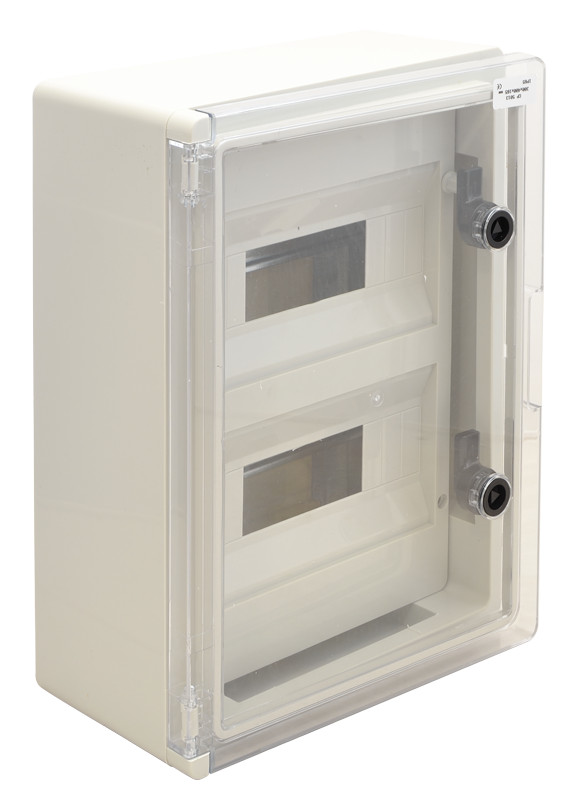 TRACON TME403017MT Műanyag elosztószekrény maszkos átlátszó ajtóval 2x12 mod, HxWxD=400x300x165mm, IP65, IK10, 1000V AC/DC