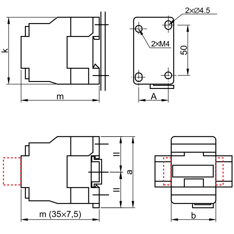TRACON TR1D1801V7 Kontaktor 400V, 50Hz, 18A, 7,5kW, 400V AC, 3×NO+1×NC