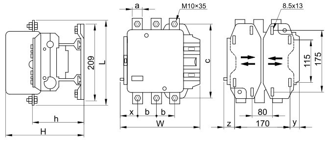 TRACON TR1E475 Nagyáramú kontaktor 415V, 50Hz, 475A, 250kW, 230V AC, 3×NO+1×NO