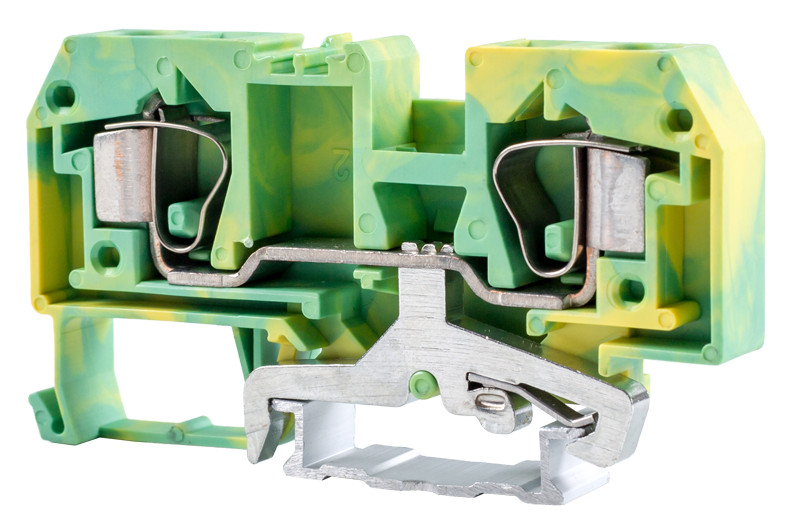 TRACON TSKC10JD Védővezető ipari sorozatkapocs, rugós, sínre, zöld/sárga 800V 57A 0.2-10 mm2 2P