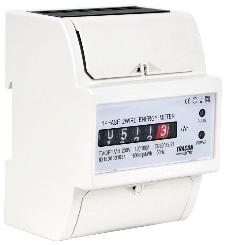 TRACON TVOF1M4 Elektromech. fogyasztásmérő, közvetlen, 1 fázisú, 4 modul 230VAC / 10(100)A