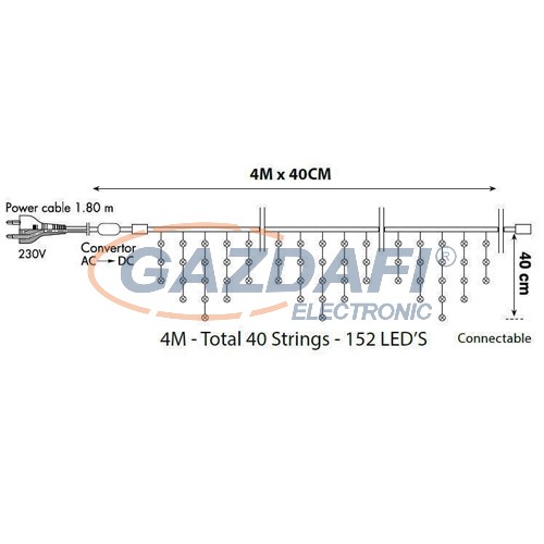TRONIX 005-058 LED-es jégcsap fényfüggöny, 4 m, 152 LED, fehér kábel, meleg fehér fény, IP44