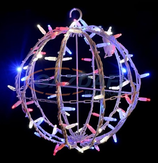 TRONIX 571-050 Kültéri 3D-dekor gömb, 35cm, fehér kábellel, piros, fehér & kék LED