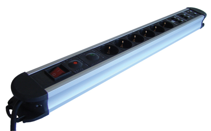 TRACON HKTM6-3M-KTS-ALU ALU 6-os elosztó kapcsoló+túlfesz+túláram+koax+tel+PC 6×SCHUKO, 3m, max.16A, 250V, 3680W, H05VV-F általános leírása: