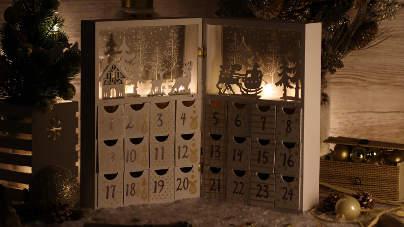 TRACON CHRACB8WW LED karácsonyi adventi kalendárium, elemes (X22051) Timer 6+18h, 8LED, 3000K, 2xAAA