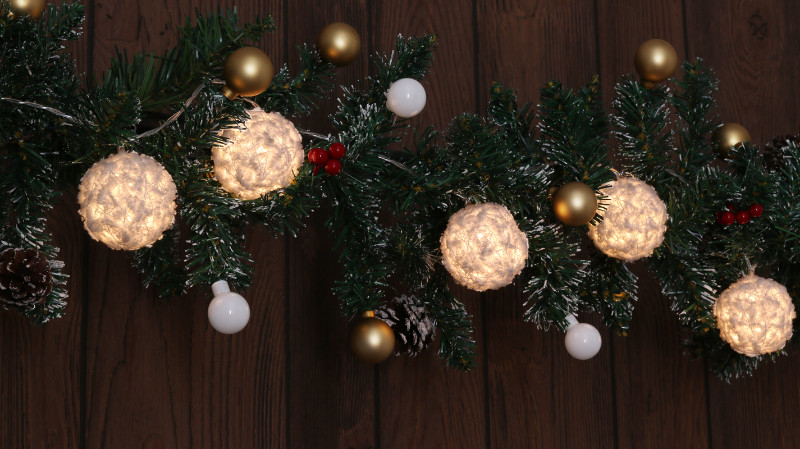 TRACON CHRSTBW10WW LED karácsonyi lánc, gömb, fehér, elemes (X22063) Timer 6+18h,10LED, 3000K 2xAA