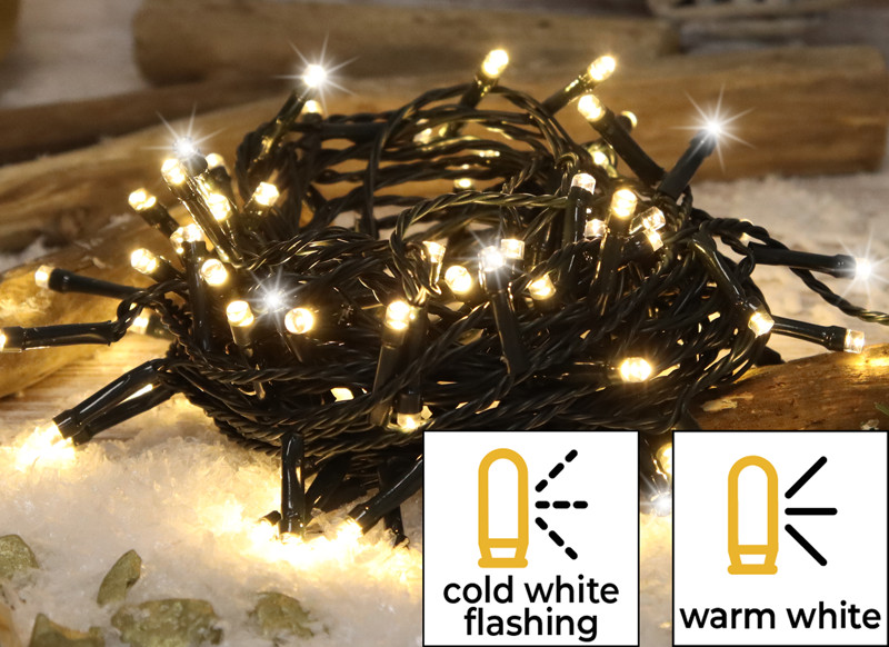TRACON CHRSTOSC500WW Karácsonyi sziporkázó fényfüzér, kültéri/beltéri (X22010) 230VAC, 5+50M, 500LED, 7,2W, 2600-2700K, IP44