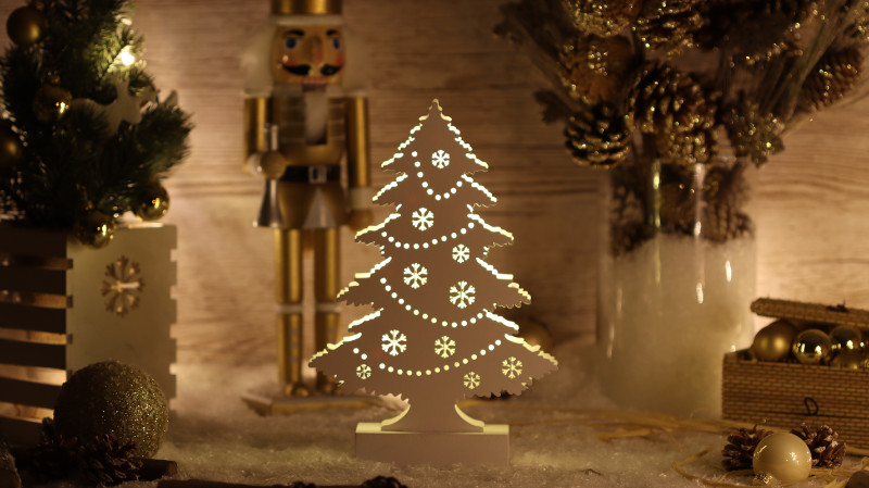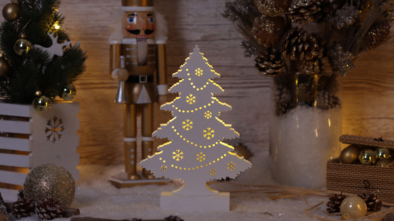 TRACON CHRTRWW7WW LED karácsonyi fenyő, fehér, fa, elemes (X22100) Timer 6+18h,7LED, 3000K, 2xAA általános leírása: