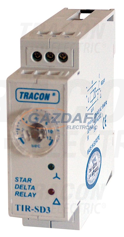 TRACON TIR-SD3 Csillag-delta időrelé, keskeny kivitel 5A/250V AC, t1=0.25s-30s, t2=0.02s-1s